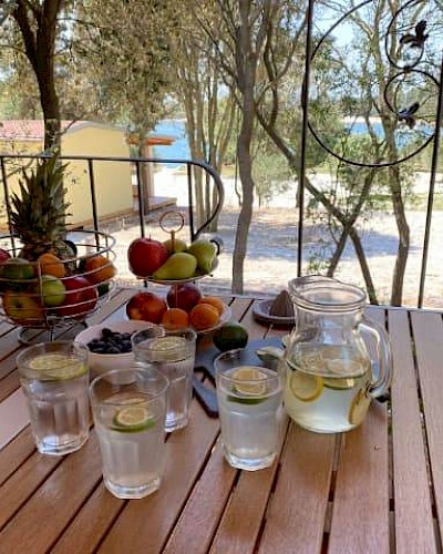 Of many wonderful things in this world, one is to relax in the deck chair and watch the Istrian sunset in Banjole. Picture yourself having dinner on the beautiful terrace, with a glass of wine... Maybe you can also spin a vinyl record, just to enhance the atmosphere? You can obtain this in our "Comfort plus" " mobile homes.